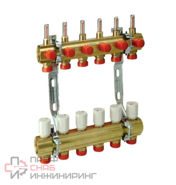 Сборный коллекторный узел предназначен для монтажа, регулирования и управления системы отопления с лучевой разводкой и для систем напольного/потолочного отопления и охлаждения.Состоит из:- обратного коллектора R553V с микрометрическими клапанами с термостатической опцией- подающего коллектора R553M с отсечными клапанами с расходомерами (0,5-5 л/мин)- двух кронштейнов R588- комплекта самоклеющихся этикеток для маркировки контуров- Коллектор поставляется собранным на кронштейнах