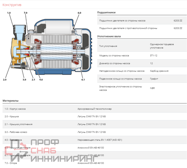 | Рабочее колесо (материал) | Латунь |