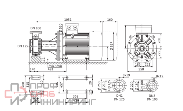 Одноступенчатый центробежный насос с сухим ротором блочного типа для установки на фундаменте. Блочное исполнение с низким уровнем шума и вибрации с промежуточным корпусом и неподвижно присоединенным унифицированным (стандартным) электродвигателем.