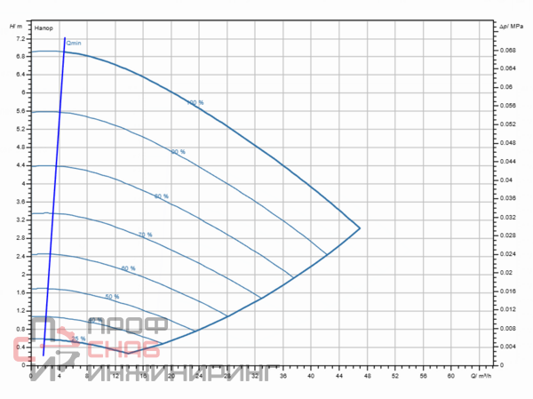 | Максимальный напор, м.вод.ст. | 6.9 |
