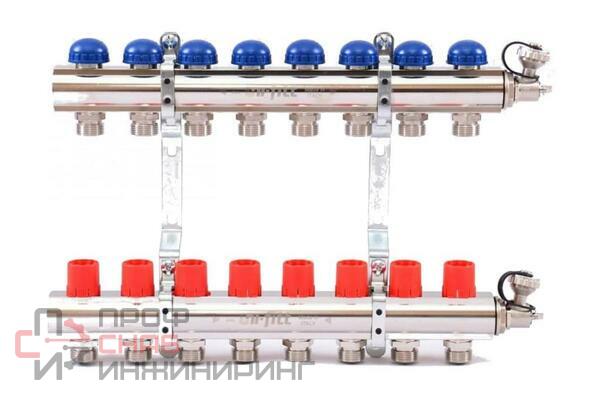 Коллекторная группа Uni-fitt: из никелированной латуни, с регулировочными, термостатическими и дренажными вентилями, 2 - 12 выходов