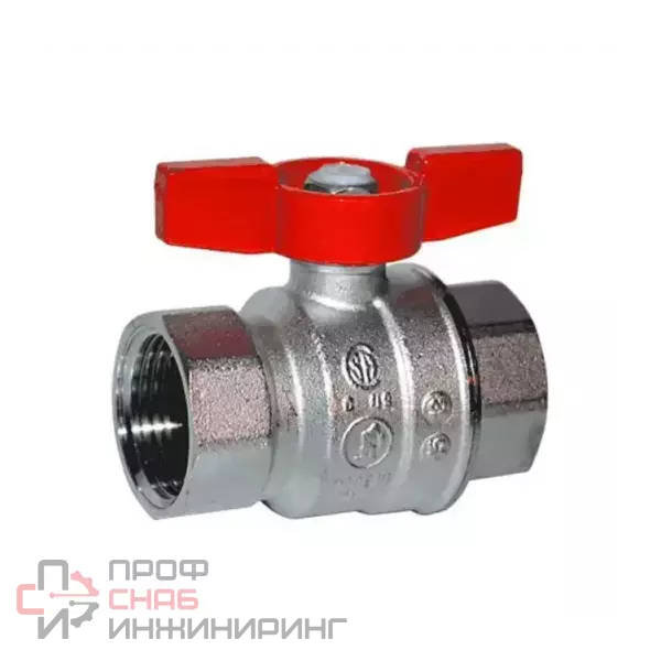 Кран шаровой полнопроходной, резьба внутренняя/внутренняя, хромированный, ручка - бабочка красная.
