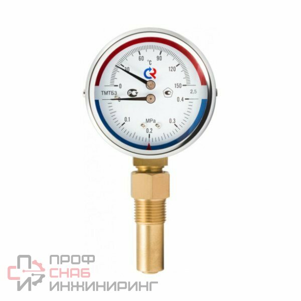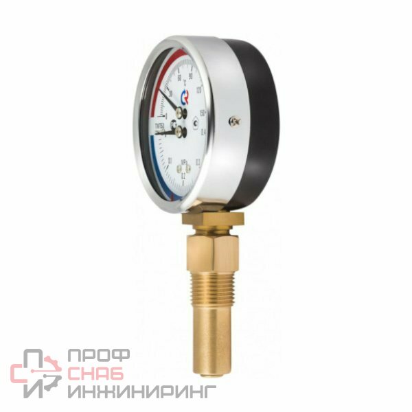 Термоманометр радиальный — комбинированный прибор, предназначенный для измерения температуры и избыточного давления неагрессивных к медным сплавам сред в системах теплоснабжения и водоснабжения. Термоманометр объединяет в одном корпусе манометр и термометр, имеет циферблат с двумя шкалами и две указательных стрелки. Одна шкала служит для отсчета давления, другая — температуры. Термоманометр комплектуется клапаном, который служит для удобства подключения прибора, а также позволяет демонтировать прибор без разгерметизации (слива) системы и остановки технологического процесса. Область применения термоманометра: системы отопления, водоснабжения, бойлеры, паровые котлы.