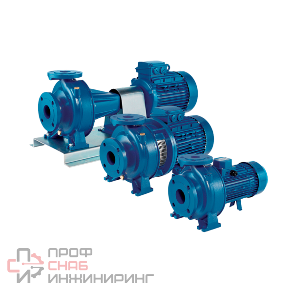 Стандартный чугунный насос с рабочим колесом из стали AISI 304 и AISI 316, осевым входом и радиальным выходом, 2- или 4-полюсными двигателями. Предусмотрена возможность снятия двигателя с муфтой, консольной опорой и рабочим колесом без отсоединения всего насоса от трубопровода. Тип торцового уплотнения выбирается с учетом перекачиваемой жидкости, рабочей температуры или иных факторов.