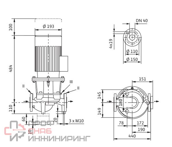 | Присоединение на напорной стороне | Фланцевое DN40 |