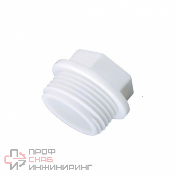 Полипропиленовый фитинг. Подходит как временная заглушка при опрессовке трубопровода, соединяется с трубной резьбой соответствующего диаметра. Производится методом литья под давлением.
