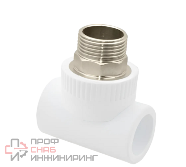 Комбинированный тройник используется для создания резьбового ответвления с наружной резьбой. Тройник изготовлен в соответствии с ГОСТ 32415-2013 и может выдерживать давление до 25 бар. Закладные детали выполнены из высококачественной латуни типа ЛС-59-2 с пониженным содержанием свинца.