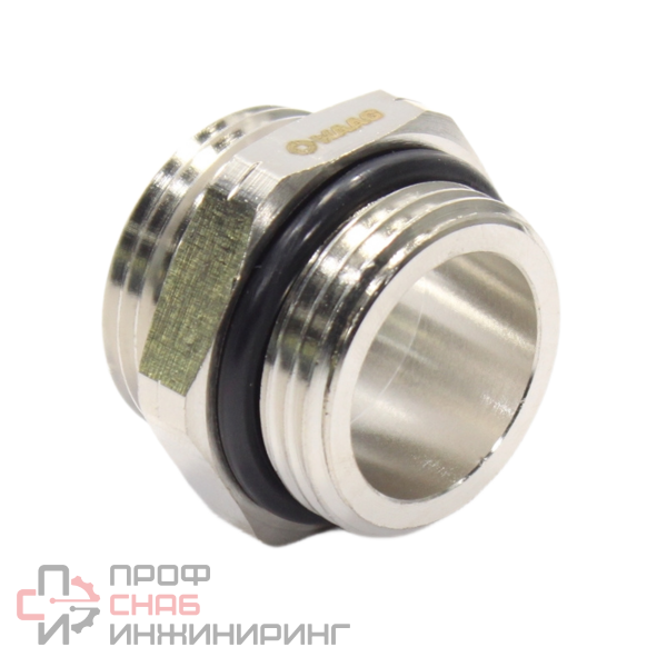 Латунный никелированный фитинг для соединения элементов трубопровода равного диаметра. Резьба – наружная/наружная. Предусмотрен участок корпуса шестигранной формы, под гаечный ключ.