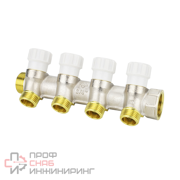 Коллекторы Varmega распределительные с запорными клапанами для систем водоснабжения серии VM147XX предназначены для распределения потока транспортируемой среды по потребителям путем перекрытия клапанов на отводах. Коллекторы могут использоваться на трубопроводах систем холодного и горячего водоснабжения, а также для транспортировки жидкости, не агрессивной к материалам элементов коллекторных систем. Распределительные коллекторы поставляются с размером основной магистрали 3/4" или 1" и могут иметь два, три или четыре выхода с наружной резьбой 1/2" или 3/4".