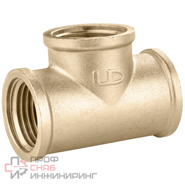 Латунный трехсторонний фитинг, равнопроходной. Резьба – внутренняя, цилиндрическая трубная по ГОСТу 6357 (ISO 228, EN 10226), совместимая также с наружной конической трубной резьбой по ГОСТу 6211 (ISO R7).