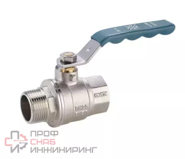 Кран шаровой. Вид: прямой кран. Назначение: вода. Тип ручки: ручка. Тип арматуры: запорная. Материал: корпус- латунь, шарик-латунь. Тип резьбы: 1/2F-1/2М (1/2 гайка-штуцер). Тип присоединения: резьбовой