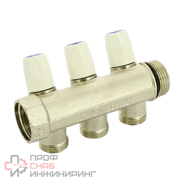 Коллектор HB с вентилями никелированный Rehau MX Rautitan 1" х 3 выхода 3/4" ЕК межосевое расстояние 40 мм предназначен для подвода, регулирования и распределения рабочей среды от основного трубопровода. Коллектор применяется в системах отопления и водоснабжения. Коллектор применяется с трубами Rehau Rautitan stabil и Rehau Rautitan flex. Коллектор выполняется из никелированной латуни. Для герметизации соединений используются уплотнения из EPDM. Для подключения к трубопроводу применяется внутренняя и внешняя резьба G 1". На отводах смонтирована наружная резьба G 3/4" евроконус. Межосевое расстояние между отводами – 40 мм. Вентили изготавливаются из пластика и имеют синюю маркировку. Для перекрытия потока воды используются шаровые краны.