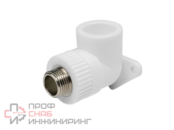 Угольник полипропиленовый комбинированный с креплением (водорозетка) НР D25-1/2" КОНТУР изготовлен из полипропилена рандомсополимера (PP-R) с закладным элементом из латуни CW617N Предназначен для соединения полипропиленовых труб с сантехническим смесителем и элементами инженерных коммуникаций с резьбовым подключением в системах ХВС, ГВС и отопления