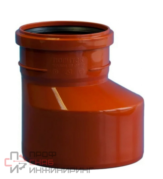 Переходы эксцентрические (патрубки переходные) для наружной канализации предназначены для редуцирования потока и соединения раструба канализационной трубы/фитинга большего диаметра с гладким концом трубы/фитинга меньшего диаметра. Выпускаются диаметрами 160/100 мм, 200/160 мм и 200/110 мм. Переход эксцентрический применяется при максимальной температуре перекачиваемой воды 70ºС (кратковременная - 95ºС).