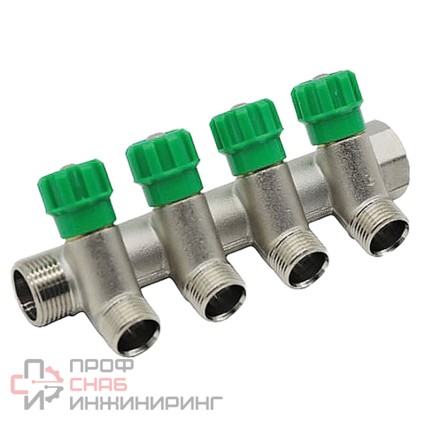 Распределители модульных коллекторных блоков при монтаже лучевой разводки водоснабжения и отопления внутри помещений различного назначения. Оснащены наружными резьбовыми патрубками для последовательного свинчивания между собой при необходимости увеличения числа отводов. Способны не только перекрывать, но и регулировать подачу в каждое ответвление. С помощью соответствующих переходников можно присоединять к отводам медную, PEX или металлопластиковую трубу.