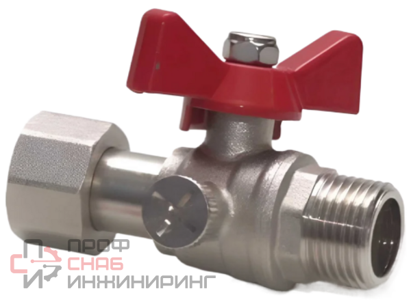 Латунный никелированный кран для подключения манометра. Присоединениеизмерительного прибора осуществляется с помощью накидной гайки суплотнением в виде паронитовой прокладки. Уплотнение штока изготовлено изEPDM. Вращение ручки крана позволяет произвести подключение манометра кизмеряемой среде, его отключение, сброс воздуха из манометра, сброс воздухаиз измеряемой среды. Предусмотрен резьбовой штуцер для присоединенияконтрольного (поверочного) манометра. Кран предназначен для систем срабочим давлением до 16 бар и максимальной температурой 120 °С.