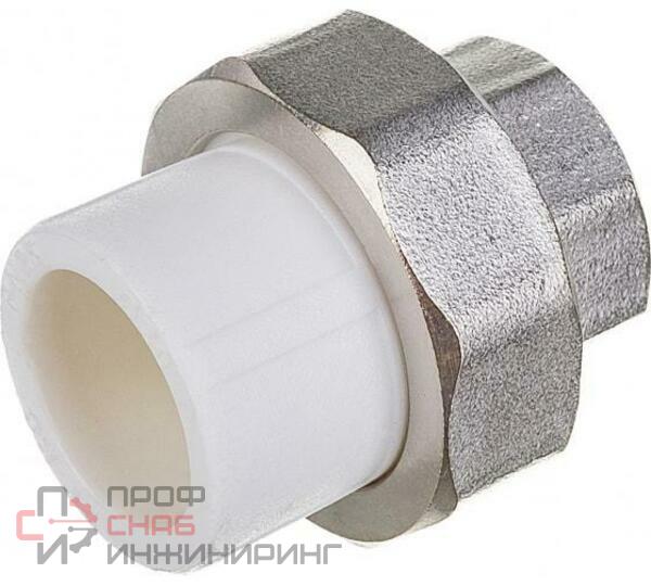 Комбинированный полипропиленовый фитинг, закладная деталь изготовлена из латуни марки ЛС-59-2. Представляет собой разъемное соединение между металлической и пластиковой трубой. Латунные части производятся методом горячего штампования, пластиковые - методом литья под давлением.