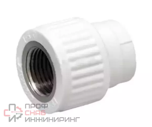 Муфта переходная комбинированная из полипропилена рандом сополимера (тип 3) с внутренней резьбой из латуни серии 42FP с одной стороны имеет раструбное термофузионное соединение под полипропиленовую трубу, а с другой стороны фитинга находится внутреннее резьбовое соединение. Данный фитинг позволяет присоединить к трубопроводу различные резьбовые элементы (краны, фильтры и т. п.), также дает возможность подключиться к другому типу трубопровода.