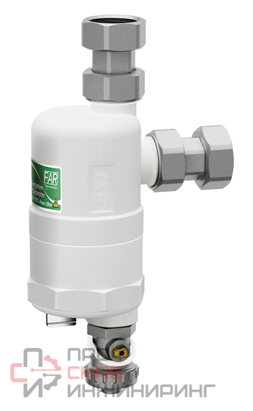 Ультра-компактный грязеуловитель в белом корпусе с магнитной вставкой, с угловым присоединением.