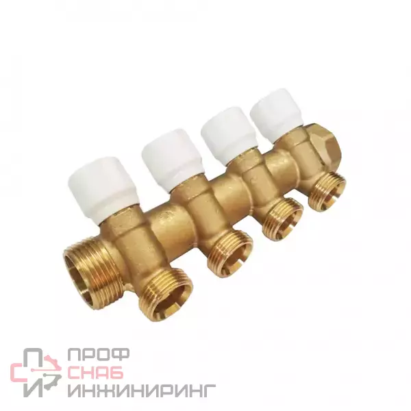Коллектор TECE TECEflex универсальный с запорными вентилями, стандартная латунь, 1" х 3/4" Евроконус, 4 контура.