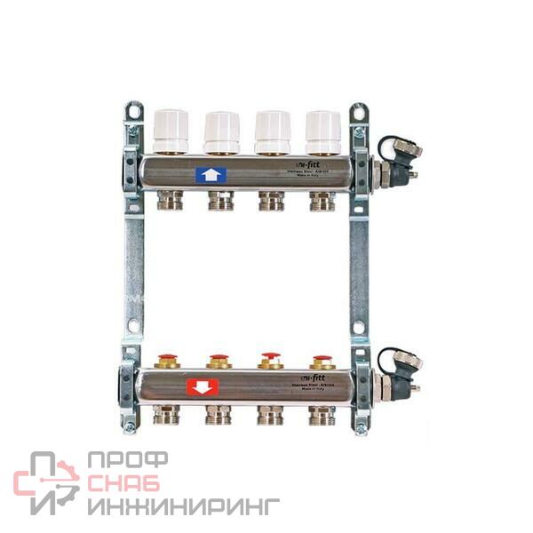 Коллекторные группы из нержавеющей стали с регулировочными и термостатическими вентилями Uni-Fitt 1" х 3/4" EK модель 451I с концевыми вентилями предназначена для распределения и регулирования потоков теплоносителя в низко- или высокотемпературных системах отопления. Коллекторы оснащены регулировочными вентилями на подающем коллекторе и термостатическими вентилями (с возможностью установки термоэлектрических приводов) на обратном коллекторе. Каждое изделие укомплектовано дренажным клапаном / воздухоотводчиком, который может быть использован для заполнения системы.