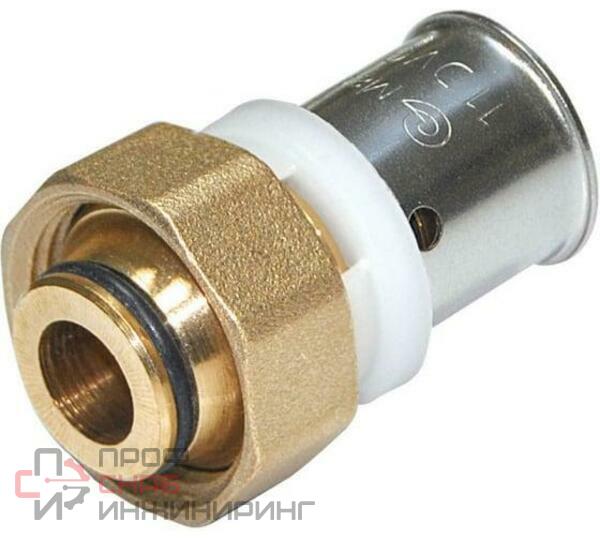 Муфта пресс-B с накидной гайкой евроконус Uni-Fitt 16х3/4" ЕК с внутренней резьбой предназначен для соединения металлопластиковых и РЕХ-труб (PE x /AL/PE x PE x /AL/PE, PE/AL/PERT) с радиаторными и коллекторными вентилями, имеющими посадочные места под евроконус при монтаже систем холодного и горячего водоснабжения, систем отопления, сантехнического оборудования.