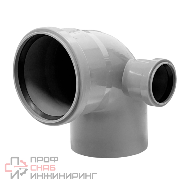 Отвод универсальный номинального диаметра 110 мм, имеет выход диаметром 50 мм применяется для соединения труб и фасонных деталей внутренней канализации, используется для монтажа канализационных систем, транспортирующих стоки внутри жилых, административных, производственных зданий.