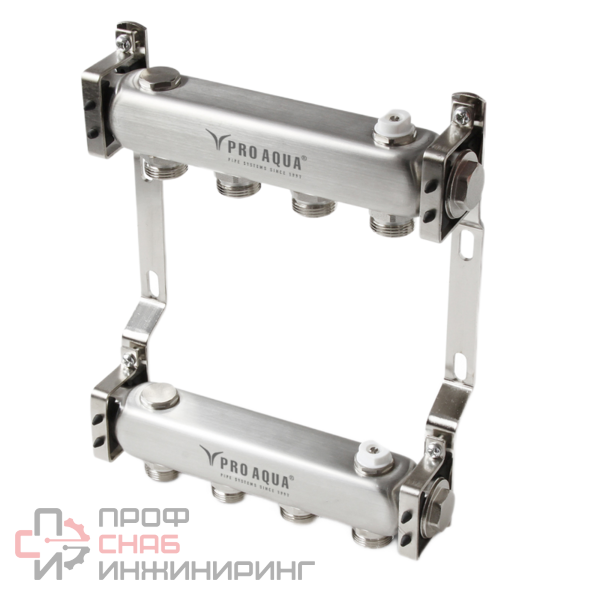 Коллектора из нержавеющей стали AISI 304 с увеличенным межосевым расстоянием 50 мм предназначены для групповой установки квартирных водосчетчиков или теплосчетчиков в этажных узлах учета многоквартирных зданий. По средствам этажных коллекторных узлов реализуют горизонтальную разводку системы отопления, которая позволяет осуществить индивидуальный учет воды и тепла.