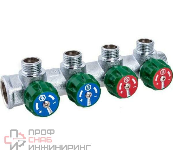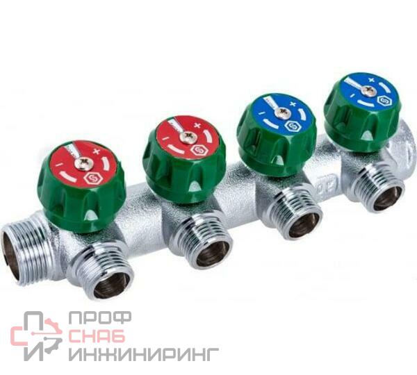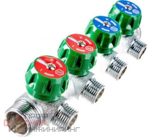 Регулирующий коллектор STOUT 3/4, 4 отвода 1/2, плоское уплотнение SMB-6849-341204 RG008UJF00344S предназначен для параллельного присоединения отдельных санитарно-технических приборов к магистральным трубопроводам систем холодного и горячего водопровода. На ответвлениях коллекторов установлены вентили для отключения потребителей и регулирования напора воды.Коллектор может иметь от 2-х до 4-х ответвлений с прямыми запорными механизмами вентильного типа. Герметичная камера запорного механизма заполнена смазочным материалом, обеспечивающим длительную эксплуатацию, легкое открытие или закрытие вентиля.