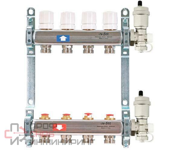Коллекторные группы Uni-Fitt предназначены для распределения и регулирования потоков теплоносителя в низко- или высокотемпературных системах отопления. Оснащены балансировочными вентилями на подающем коллекторе и термостатическими вентилями (с возможностью установки термоэлектрических приводов) на обратном коллекторе. Каждое изделие укомплектовано автоматическими воздухоотводчиками.