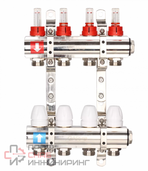 Коллекторы распределительные для систем водяного отопления и теплого водяного пола типа SMS используются для контроля и распределения теплоносителя в системе отопления. Каждая труба отопительной системы водяного отопления или теплого водяного пола подключается к коллектору, что позволяет осуществлять контроль и регулировку потока теплоносителя индивидуально в каждом циркуляционном кольце.