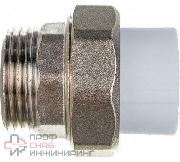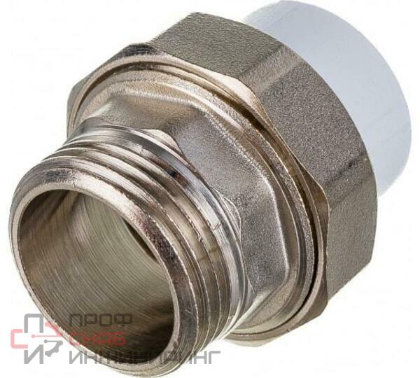 Комбинированный полипропиленовый фитинг, закладная деталь изготовлена из латуни марки ЛС-59-2. Представляет собой разъемное соединение между металлической и пластиковой трубой. Латунные части производятся методом горячего штампования, пластиковые - методом литья под давлением.