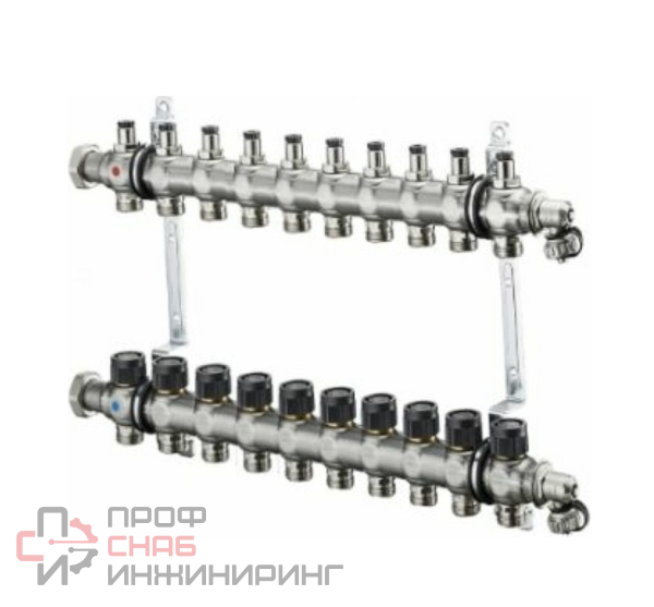 Гребенка "Multidis SF" для панельного отопления и охлаждения на 12 контуров, с рег. вставками, из нерж.стали.