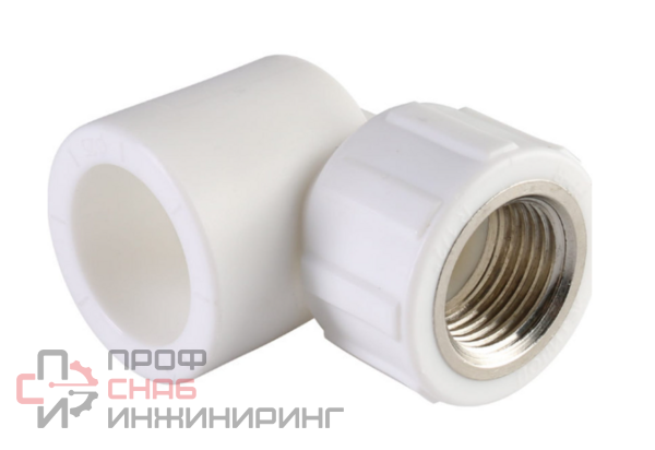 Угольник комбинированный с внутренней резьбой используется для соединения под углом 90о трубы PPR с резьбовым фитингом с наружной резьбой. Выпускаются в вариантах: с трубы 20 мм на резьбу ½ или ¾, с трубы 25 мм на резьбу ½ или ¾, с трубы 32 мм на резьбу 1 или ¾. Закладные детали - латунь. Применяется при максимальной температуре перекачиваемой воды - 80ºС (кратковременная - 95ºС).