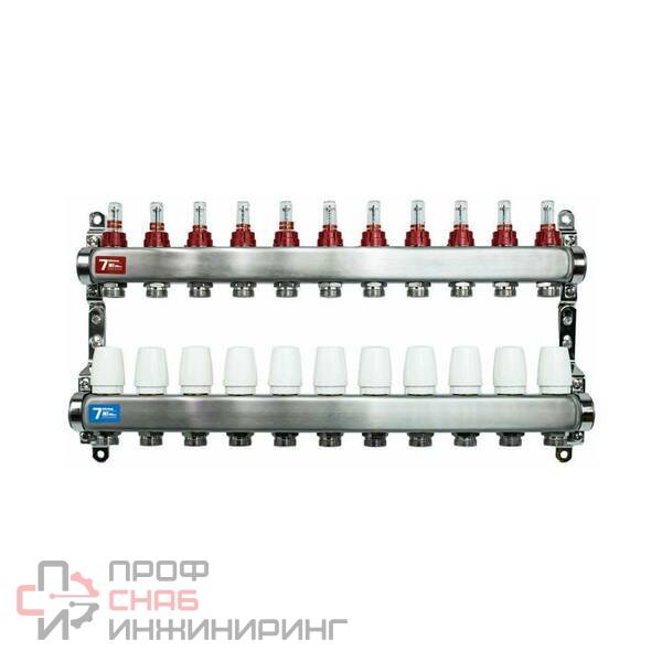 Коллекторные группы из латуни с расходомерами предназначаются для распределения потока транспортируемой среды по контурам теплого пола, рассчитана на применение в системах водяного отопления с максимальной рабочей температурой 70 °C и давлением не более 6 бар, в качестве рабочей среды может применяться вода или незамерзающие гликолевые смеси. Присоединение трубных петель осуществляется с помощью фитингов стандарта "евроконус". Ручные настроечные клапаны с расходомерами позволяют произвести точную регулировку расхода теплоносителя индивидуально в каждом циркуляционном контуре .