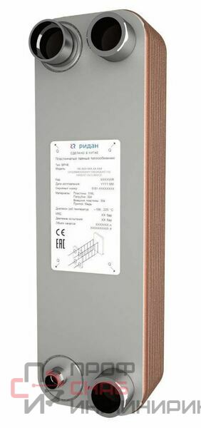 Теплообменник пластинчатый типа BPHE состоит из рифленых тонкостенных теплообменных пластин из нержавеющей стали, спаяных между собой с помощью припоя – меди или никеля. Между пластинами образуются каналы для прохода теплоносителя. Высокая турбулентность потока и принцип противотока обеспечивают эффективный теплообмен. Теплообменник служит для передачи тепла от теплоносителя первичного контура к теплоносителю вторичного контура через пластины, которые позволяют избежать перемешивания потоков теплоносителя друг с другом.