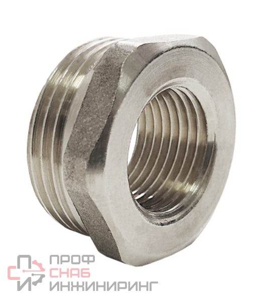 Футорка – это фитинг, обеспечивающий соединение труб разного типоразмера, подключение трубопровода к элементу системы с большим диаметром присоединительного патрубка, ремонт (замену) поврежденной резьбы. Футорка изготовлена методом горячей объемной штамповки из высококачественной латуни марки ЛС 59-1 с гальваническим нанесением никелевого покрытия. Резьба – наружная/внутренняя, по типу – трубная цилиндрическая по ГОСТу 6357-81. Шестигранная головка футорки служит ее вкручиванию гаечным ключом.