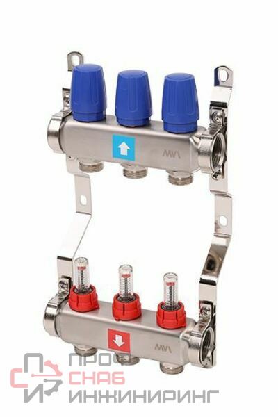 Коллекторные блоки MVI предназначены для распределения потока рабочей среды систем водяного отопления по потребителям. При этом под «потребителем» понимается отдельный нагревательный прибор или группа приборов, контур или петля «теплого пола», отдельные части или ветви системы. Коллекторный блок объединяет в себе подающий и обратный коллекторы из нержавеющей стали, ручные настроечные клапаны c расходомерами, термостатические клапаны (с возможностью установки электротермического сервопривода) и крепежные кронштейны. Коллекторные блоки могут работать как на водяном, так и низкозамерзающем (гликолевом) теплоносителе. Коллекторные блоки выпускаются с количеством выходов от 2 до 12. Присоединение циркуляционных петель осуществляется с помощью фитингов стандарта «евроконус» 3/4" (НР).