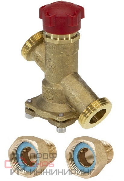 Комбинированный балансировочный клапан — ограничитель расхода AQT-R с наружной резьбой в комплекте с фитингами, без измерительных ниппелей, с изменяемой настройкой.