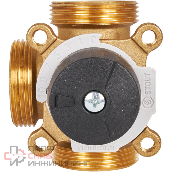 Клапан смесительный регулирующий 3-ходовой поворотный Stout предназначен для регулирования температуры теплоносителя, горячей воды в системах отопления и горячего водоснабжения зданий.Клапан имеет поворотный затвор, что позволяет смешивать две жидкости (например, горячую и холодную воду) для достижения желаемой температуры.