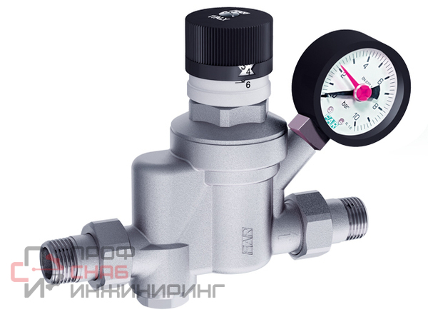 Редуктор с фильтром FAR 1/2" НР-НР с визуализацией давления с манометром 600 мкм хром