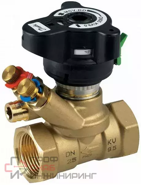 Ручной балансировочный клапан, MSV-BD со встроенным шаровым краном, со сливным краном и измерительными ниппелями.