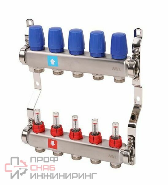 Коллекторные блоки MVI предназначены для распределения потока рабочей среды систем водяного отопления по потребителям. При этом под «потребителем» понимается отдельный нагревательный прибор или группа приборов, контур или петля «теплого пола», отдельные части или ветви системы. Коллекторный блок объединяет в себе подающий и обратный коллекторы из нержавеющей стали, ручные настроечные клапаны c расходомерами, термостатические клапаны (с возможностью установки электротермического сервопривода) и крепежные кронштейны. Коллекторные блоки могут работать как на водяном, так и низкозамерзающем (гликолевом) теплоносителе. Коллекторные блоки выпускаются с количеством выходов от 2 до 12. Присоединение циркуляционных петель осуществляется с помощью фитингов стандарта «евроконус» 3/4" (НР).
