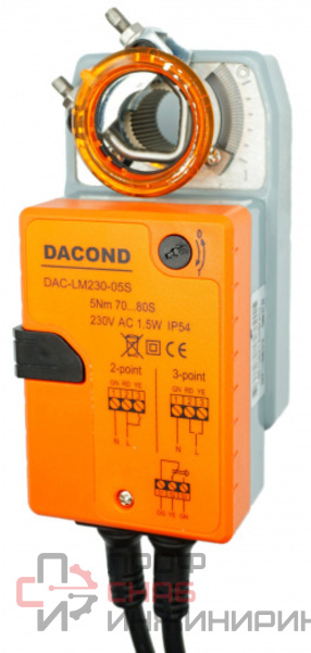 Отличительная особенность электропривода DAC-LM24-02SM – отсутствие пружинного возврата. Открытие и закрытие привода производятся за счет работы электродвигателя. Из-за данного принципа работы привод относится к группе «реверсивных» приводов (закрытие происходит за счет работы электродвигателя в «обратную сторону» - реверс).