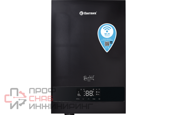 Электрический котел отопления THERMEX (Термекс) Boss 12 Wi-Fi (Black) – это практичное и надежное решение для обогрева жилых помещений общей площадью до 120 кв. метров. Всеми функциями модели можно управлять со своего смартфона, используя технологию Wi-Fi, или же при помощи голосового помощника Алиса.