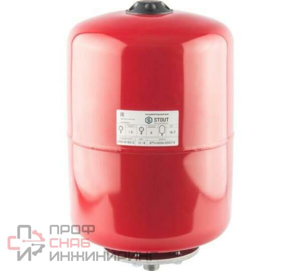 Расширительный бак 18 л STOUT STH-0004-000018 используется для компенсации температурного расширения в системе и стабилизации давления, сглаживания колебаний давления и компенсации гидравлических ударов в системах отопления с температурой теплоносителя до 100ºС.В расширительном баке используется вода по СНиП 2.04.07, а также водно-гликолевые смеси (раствор - до 50% гликоля).Корпус бака выполнен из стали, а мембрана из натуральной резины и бутила.Бак не имеет опор, мембрана сменная.