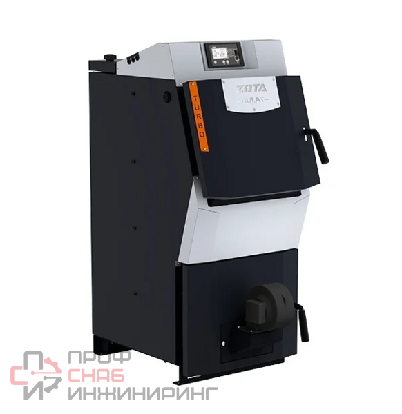 В турбированном котле установлена автоматика управления системой отопления, и вентиляторный нагнетатель воздуха. Процесс горения на одной закладке угля может достигать 30 часов (в режиме тления). Дополнительно автоматика управляет работой циркуляционных насосов, приводами трехходовых смесителей, контуром ГВС. Современные водонаполненные колосники. Увеличивается КПД, за счет улучшения теплосъема.