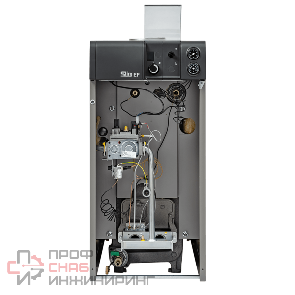 Если вам требуется энергонезависимый газовый котел, вам подойдут модели из серии SLIM EF, оснащенные атмосферной горелкой и изготовленные на основе чугуна. Линейка отличается особенностью обеспечения безопасности: если пламя погаснет, автоматически сработает закрытие газового клапана. Поэтому электроснабжение не обязательно, оборудование может функционировать на основе циркуляции теплоносителя. В этой линейке можно выбрать модель мощностью 22-61 кВт. Ее отличает дизайн, состоящий из серого корпуса с панелью управления черного цвета.(Для моделей 1.39, 1.49, 1.61 необходимо дозаказать дымовой колпак 7215464--, 7215464--, 7215465-- соответственно, в цену он уже включен).