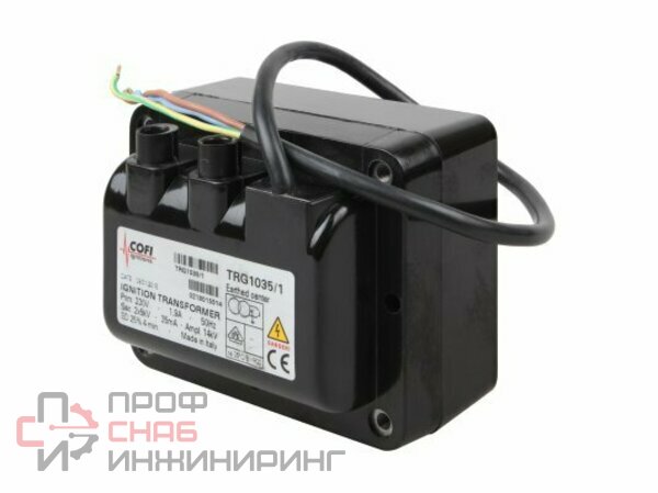 Трансформатор поджига Cofi TRG1035/1 – электронное устройство для преобразования сетевого тока (230 В) в ток высокого напряжения (2x5 кВ), и эффективного розжига горелки при включении.