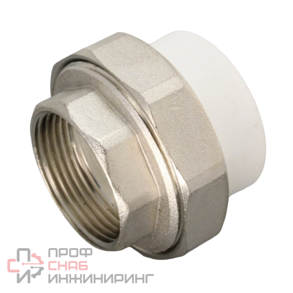 Комбинированный полипропиленовый фитинг, закладная деталь изготовлена из латуни марки ЛС-59-1. Представляет собой разъемное соединение между металлической и пластиковой трубой. Латунные части производятся методом горячего штампования, пластиковые - методом литья под давлением.